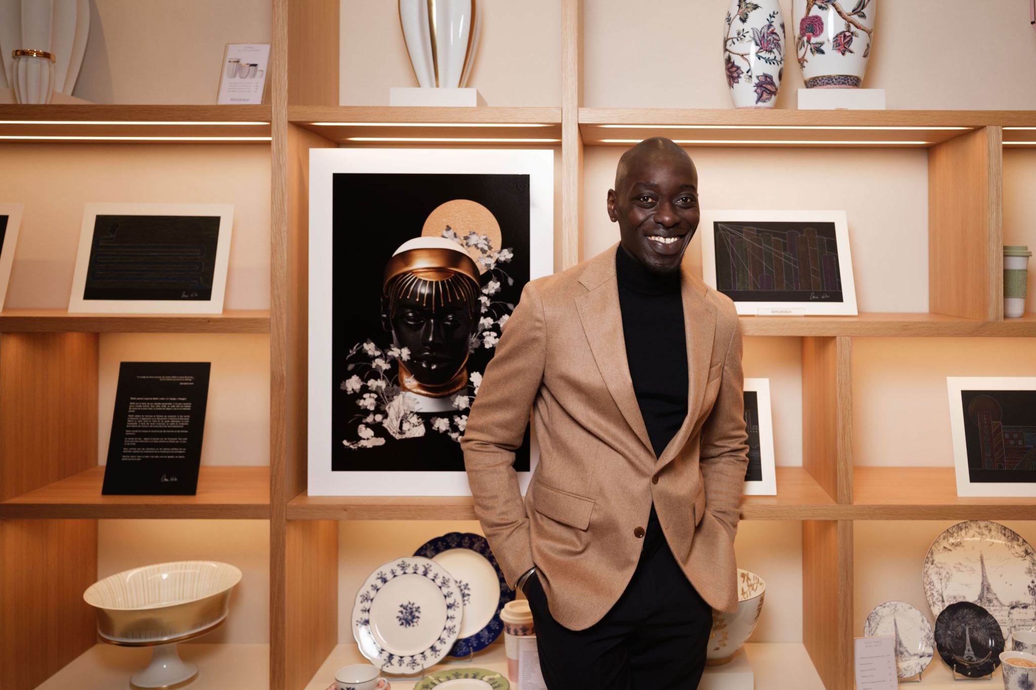 Dans la langue sénégambienne wolof, le mot « tukki » évoque le voyage. Inspiré par ce terme de son Sénégal natal et la découverte des ateliers Bernardaud à Limoges, Omar Victor Diop s’est lui aussi embarqué dans un voyage au cœur de l’art de la porcelaine. En résulte “Touki”, la toute première création en trois dimensions de l’artiste originaire du Dakar. Créé en édition limitée à 199 exemplaires au sein de la manufacture, cette sculpture incarne à la fois le savoir-faire et la tradition qui font le renom de la Maison Bernardaud, et la touche artistique d’Omar Victor Diop. Pour célébrer et illustrer les étapes de cette odyssée à l’origine de « Touki », ce jeudi 27 mars, la Boutique Bernardaud a accueilli une soirée festive. Nous y avons notamment croisé Omar Victor Diop, aux côtés de Michel Bernardaud, Frédéric Bernardaud, Charles Bernardaud, Frédéric Fontan, Sitor Senghor…