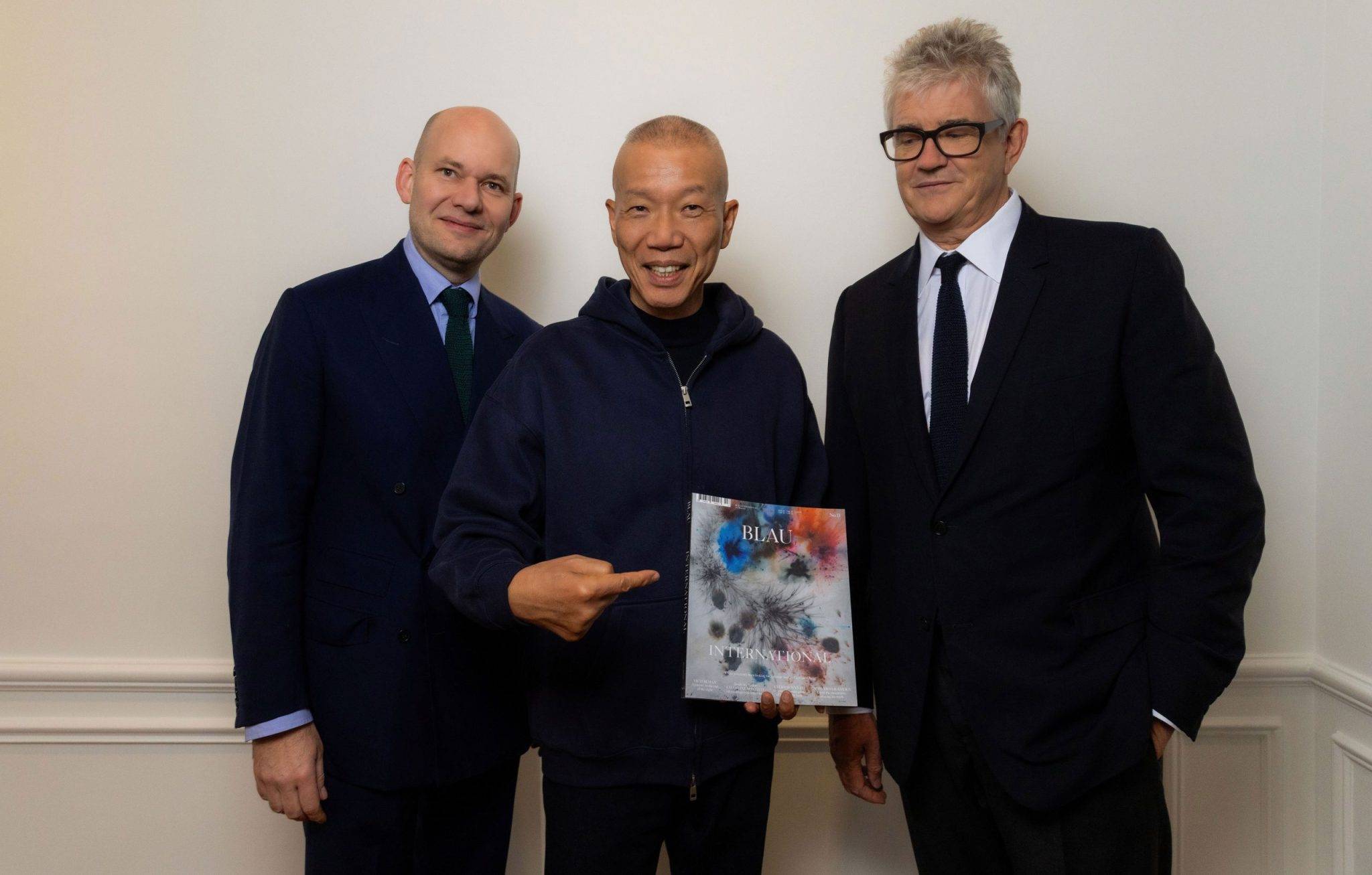 Après un spectaculaire feu d’artifice organisé la veille pour la fermeture du Centre Pompidou, l’artiste cai Guo-Qiang a célébré le lancement du nouveau numéro de Blau International chez White Cube, aux côtés du rédacteur en chef Cornelius Tittel et du fondateur de la galerie, Jay Jopling.