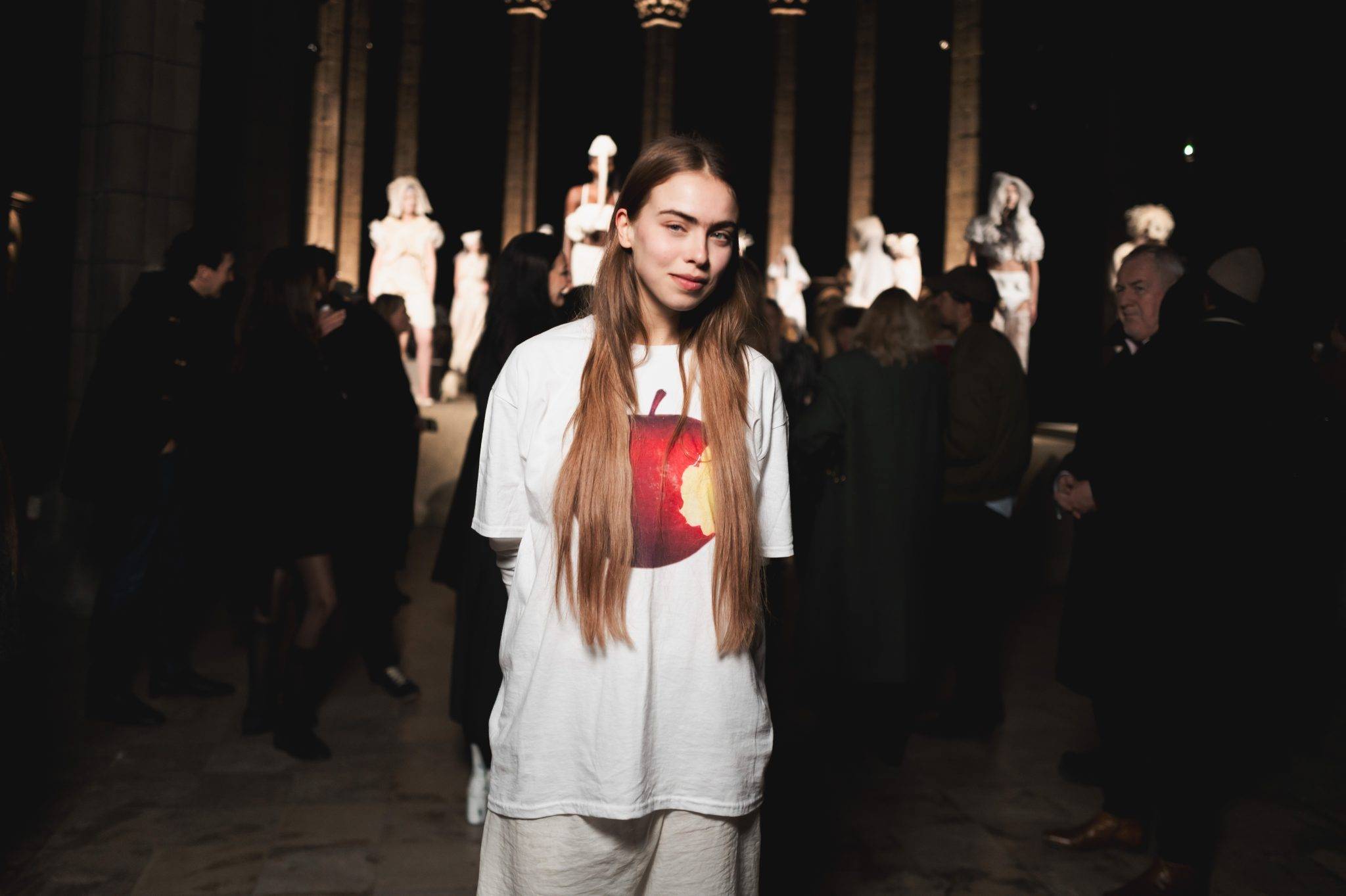 Ce lundi 26 janvier, le public parisien et autres invités de la Haute Couture Week ont découvert la toute première collection d’Ida Immendorff. Dans l’église du Village Reille, la jeune créatrice présentait une ligne de costumes intitulée “HI, WAY TO HEAVEN?”, qui porte bien son nom. Dans des tons uniquement blancs et crèmes, on découvre une mode chérubine et onirique, tout droit sortie de contes d’enfants. Les costumes sont inspirés d’animaux fantastiques ou plus réels, parmi lesquels on croise une licorne aux côtés d’un chat. Au cœur de cet univers de masques et de coiffes, on remarque un hennin, un bonnet de nuit revisité, et même un diadème de cornes qui n’est pas sans rappeler la statue de la Liberté.