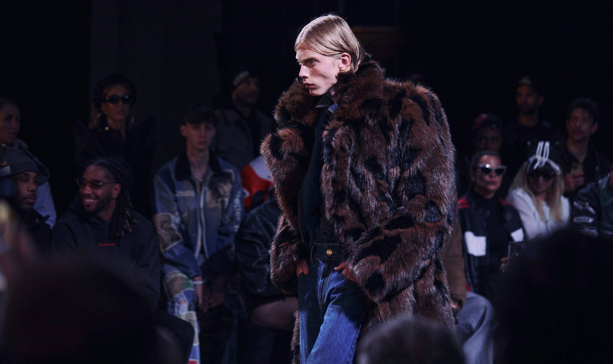 Depuis plusieurs saisons maintenant, le designer sud-coréen Jung Wook-Jung nous a habitués à une maîtrise hors-norme de la proportion. Pour cette collection Automne-Hiver 26/27, Juun.J propose un défilé intense, presque intimidant. Le show fait la part belle aux ensembles de cuirs sombres et monochromes, qui côtoient des silhouettes en full denim et des tenues assorties aux imprimés audacieux. Côté accessoires, les lunettes de soleil, presque omniprésentes, donnent l’impression d’un tapis rouge plus que d’un runway. Les larges bérets inclinés, les épaules accentuées, les pantalons larges et les jupes structurées se dévoilent dans cet harmonieux mélange entre élégance et décontraction. Un nouveau sans faute pour Juun.J.