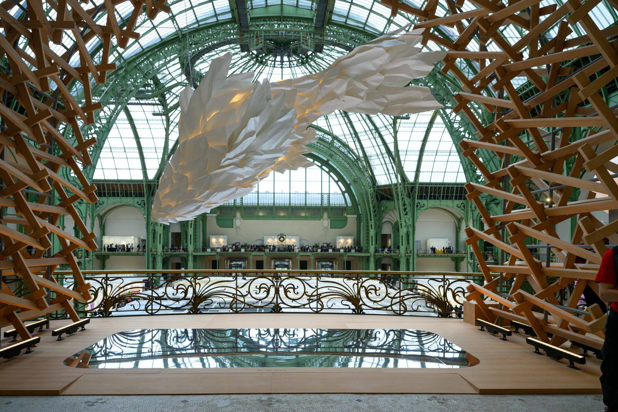 Ce rendez-vous d’esthètes se prolonge hors-les-murs, avec l’exposition Tales & Tellers au Palais d’Iéna en collaboration avec Miu Miu ou encore, C’Mon England, l’installation in situ de Jesse Darling, faite d’échelles tordues – symbole d’une ascension en échec, au Petit Palais.