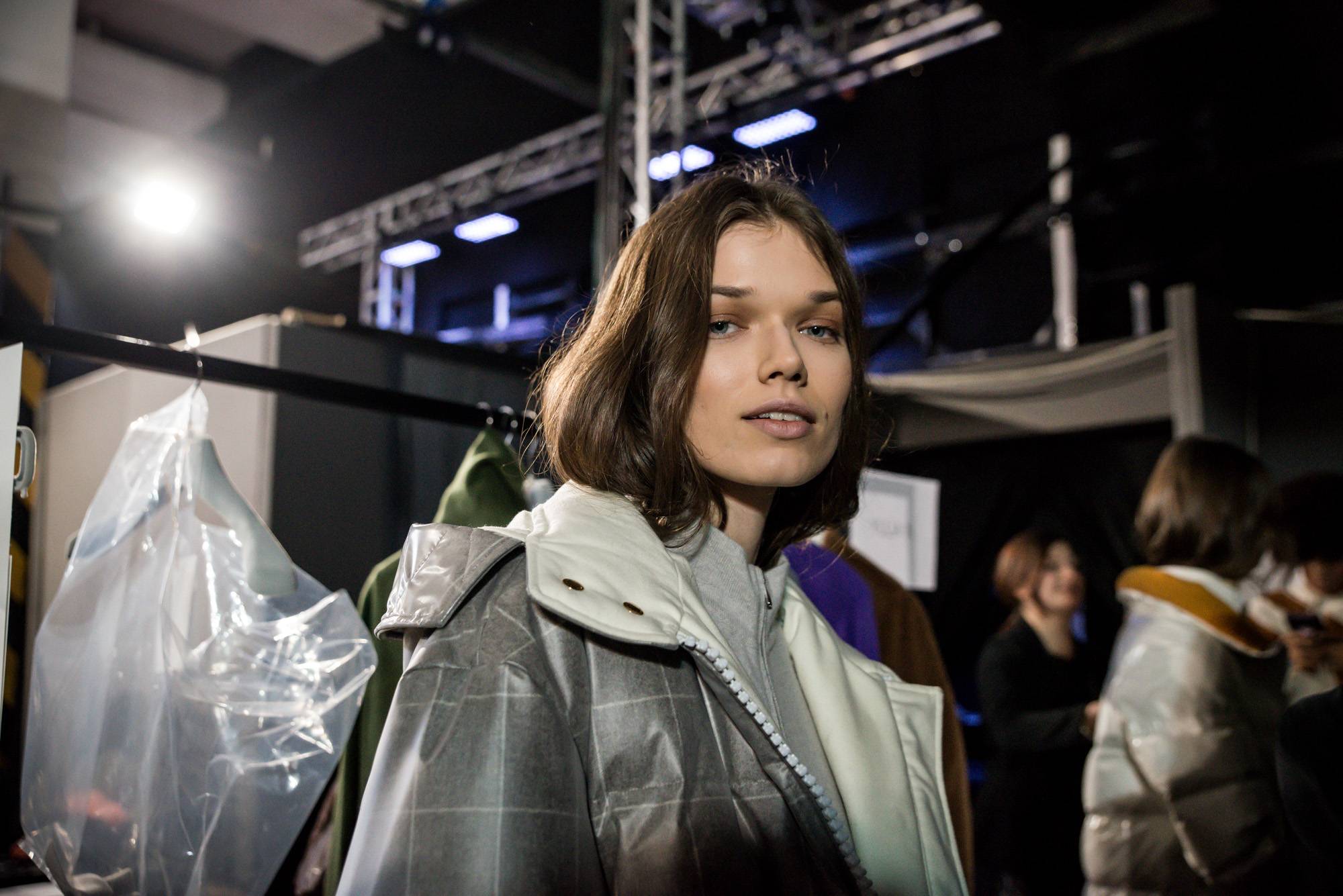 AltaRoma est le troisième grand rendez-vous de la mode italienne avec la Fashion Week de Milan et Pitti Immagine à Florence. Pour l’automne-hiver 2019, le calendrier est pour le moins chargé avec 42 shows prévus dans un tout nouveau lieu : PratiBus District, un local désaffecté de 5 000 mètres carrés au cœur du quartier de Prati et tout proche du centre historique. Pour Malo, la marque florentine historique de mailles et de cachemire précieux, c’est un retour sous les projecteurs. La maison vient d’être reprise par un trio composé de Walter Maiocchi et Luigino Belloni (tous deux des industriels italiens) et de Mario Stangoni. Avec cette collection, Malo démarre une nouvelle étape importante de son histoire. L’ADN de la maison est resté intact: “made in Italy”, savoir-faire des mailles, fait main et matières premières rares. Nancy Marchini, la directrice de la communication de la marque nous présente en backstage la collection et ses accessoires de sacs tressés en maille à la main. Assis au premier rang, on ne rate pas Simonetta Gianfelici (membre officiel d’AltaRoma en charge des jeunes créateurs), Anastasiya Ammocoba, ou le designer Manos Samartsis.