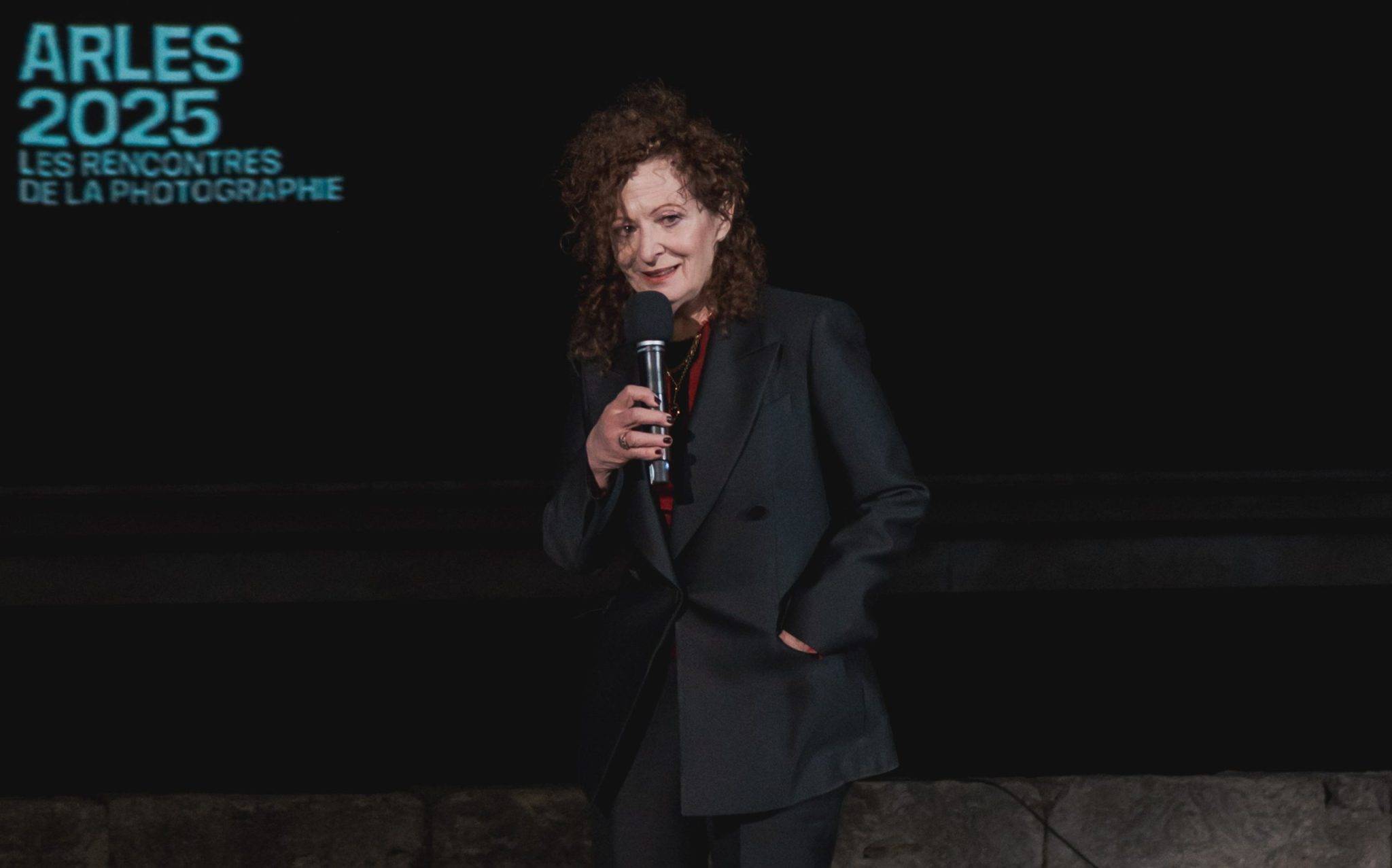 L’un des temps forts de cette 56e édition des Rencontres d’Arles s’est déroulé ce mardi 8 juin, lorsque le Théâtre Antique a accueilli la première soirée du festival, marquée par la très attendue apparition de Nan Goldin. La compagnie Gratte Ciel a signé l’ouverture avec une impressionnante performance de vignettes aériennes, avant que le directeur des Rencontres d’Arles, Christoph Wiesner, ne dévoile les lauréats du Prix du Livre. Cette année, le prix du livre photo-texte revient à Rosalind Fox Solomon pour A Woman I Once Knew, et Katja Petrowskaja reçoit la mention spéciale pour son livre La photo me regardait ; Rawsht Twana remporte le prix du livre historique avec Twana’s Box, et la mention spéciale revient à Bidi Tomasi pour son livre Al cerchio delle tue mani ; enfin le prix du livre d’auteur récompense Vuyo Mabheka pour son livre Popihuise, et Johny Pitts, qui reçoit la mention spéciale pour son livre Afropean.