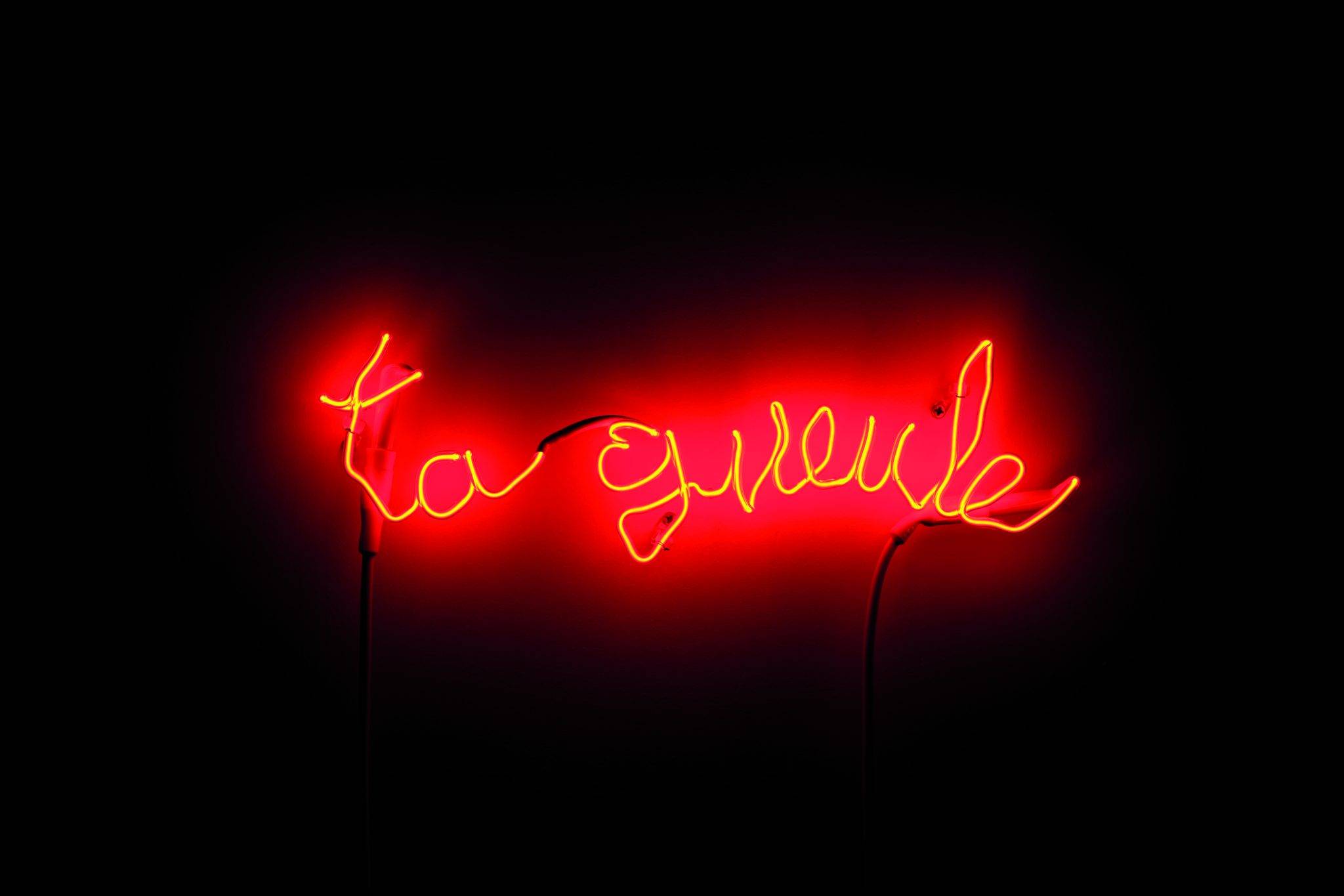 Les néons de ce provocateur sensible et leur vibration étrange au milieu des rangées d’ordinateurs, qui nous rappelaient que nous étions bien sur un lieu de travail, disaient tour à tour aux visiteurs amusés « Ta gueule », « Riez », « Nous sommes heureux ».