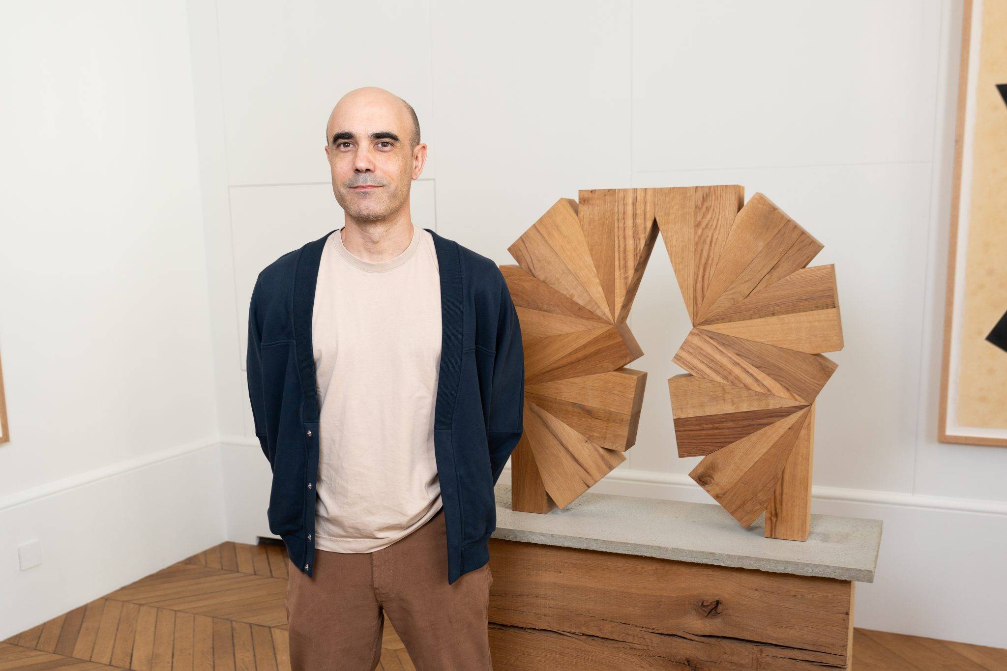 La Maison Liaigre a invité l’artiste français Raphaël Zarka en son siège au 77 rue du Faubourg Saint-Honoré à Paris, à exposer son travail sous la verrière de l’atelier durant Art Paris. Menant une réflexion sur les sciences et l’histoire de l’art, Zarka s’intéresse à la migration des formes, à leurs récurrences autant qu’à leurs usages. À partir d’un corpus d’objets existants (images, motifs, constructions, structures), il crée des ensembles de sculptures et d’œuvres sur papier, tissant des liens entre les époques et les disciplines. L’exposition Suite Serlienne réunit ainsi un ensemble de pièces explorant les possibilités créatives à partir d’une seule forme géométrique élémentaire. Raphaël Zarka décline un langage sculptural et graphique s’inscrivant dans l’héritage de l’art conceptuel. Dans cette exposition qui dévoile les liens de l’artiste avec la Maison Liaigre, la géométrie et les matériaux dialoguent avec l’architecture. Lors de son inauguration, nous avons notamment croisé Franck Scurti, Mathieu Mercier, Benoît Maire, Jean-Gabriel Mitterrand…