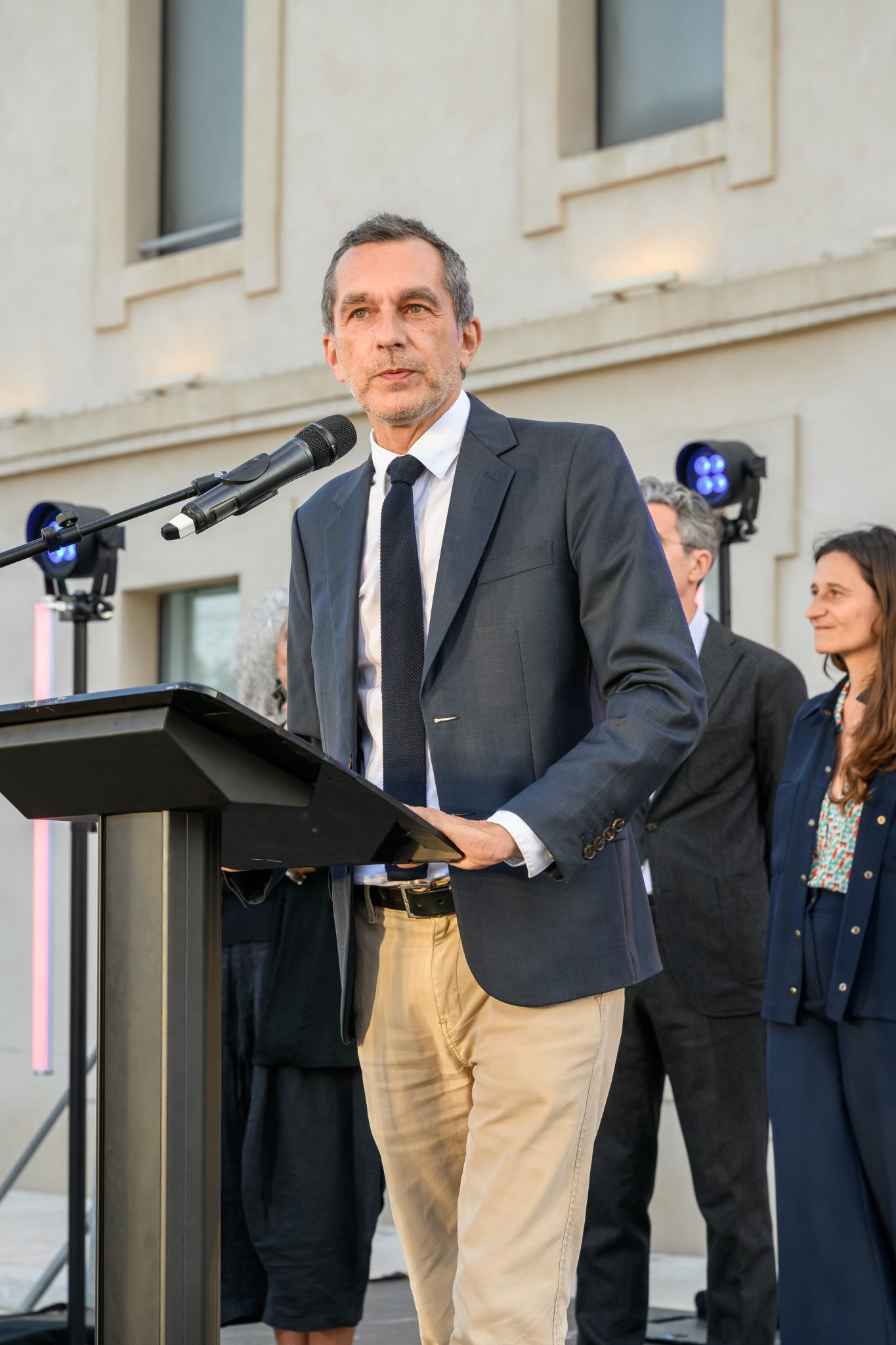 Zeus, le cheval métallique de l’ouverture des JO-2024, galope sur la terrasse du Mucem