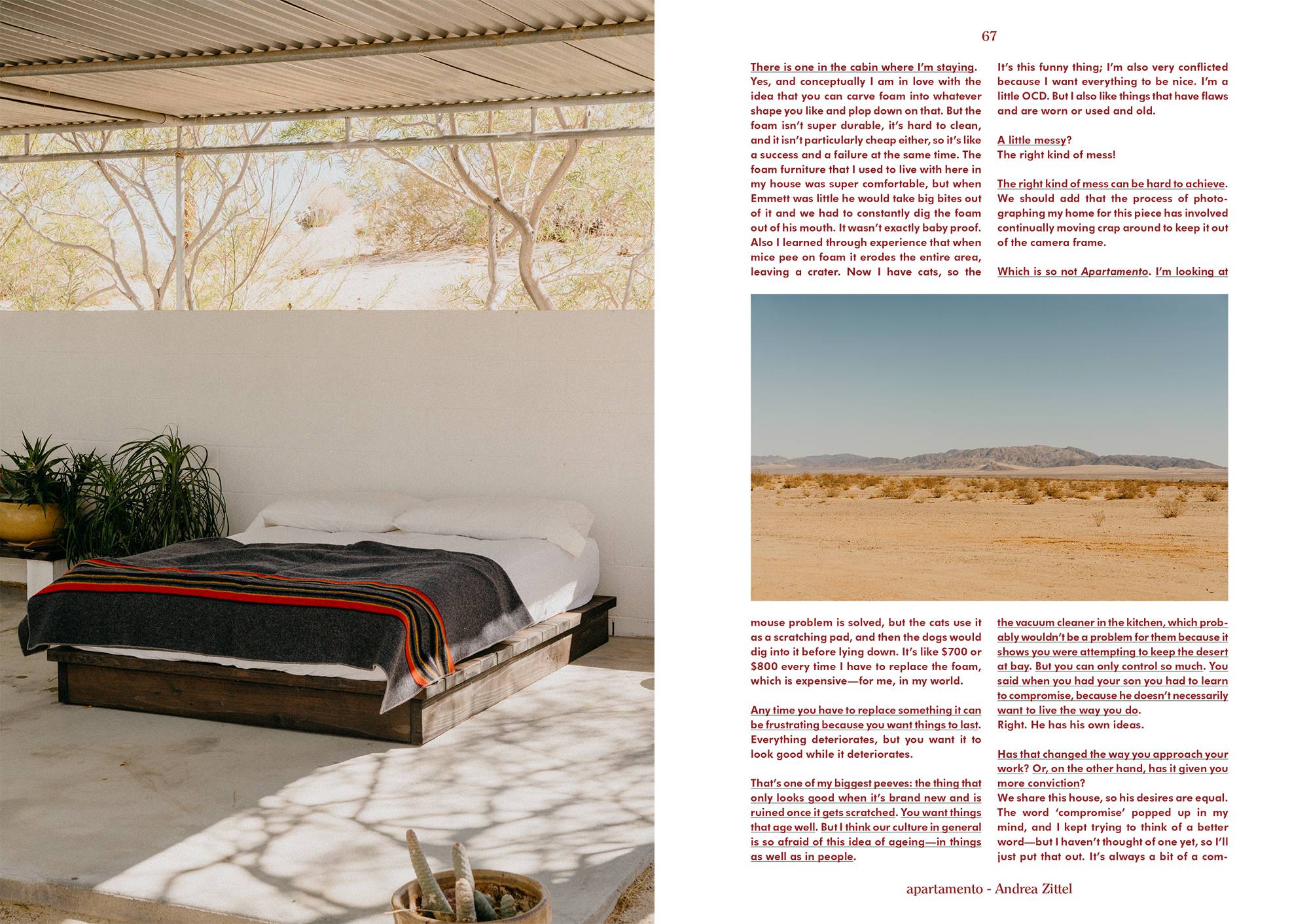 Ça marche dans les deux sens. Apartamento n’a jamais été un projet motivé par l’argent, c’est un hobby. Il a toujours été très important pour nous de garder cette pureté, et c’est ce qui nous a permis de grandir vite. Beaucoup de gens viennent nous voir dans l’espoir de paraître dans le magazine, mais nous ne rejetons pas une idée parce qu’elle semble trop cliché. En un sens, on peut dire que nous avons créé notre propre cliché avec le temps. On nous dit souvent: « cet appartement est tellement Apartamento! » Pour moi, la perfection n’est pas une fin en soi et je pense que ce sont les imperfections qui rendent les choses belles. Apartamento est un objet que l’on veut toucher, sentir. Ce n’est pas l’un de ces beaux livres que vous avez peur d’abîmer. Peut-être avons-nous lancé le magazine en réaction à la culture du beau livre… Je crois que j’ai bien assez parlé !