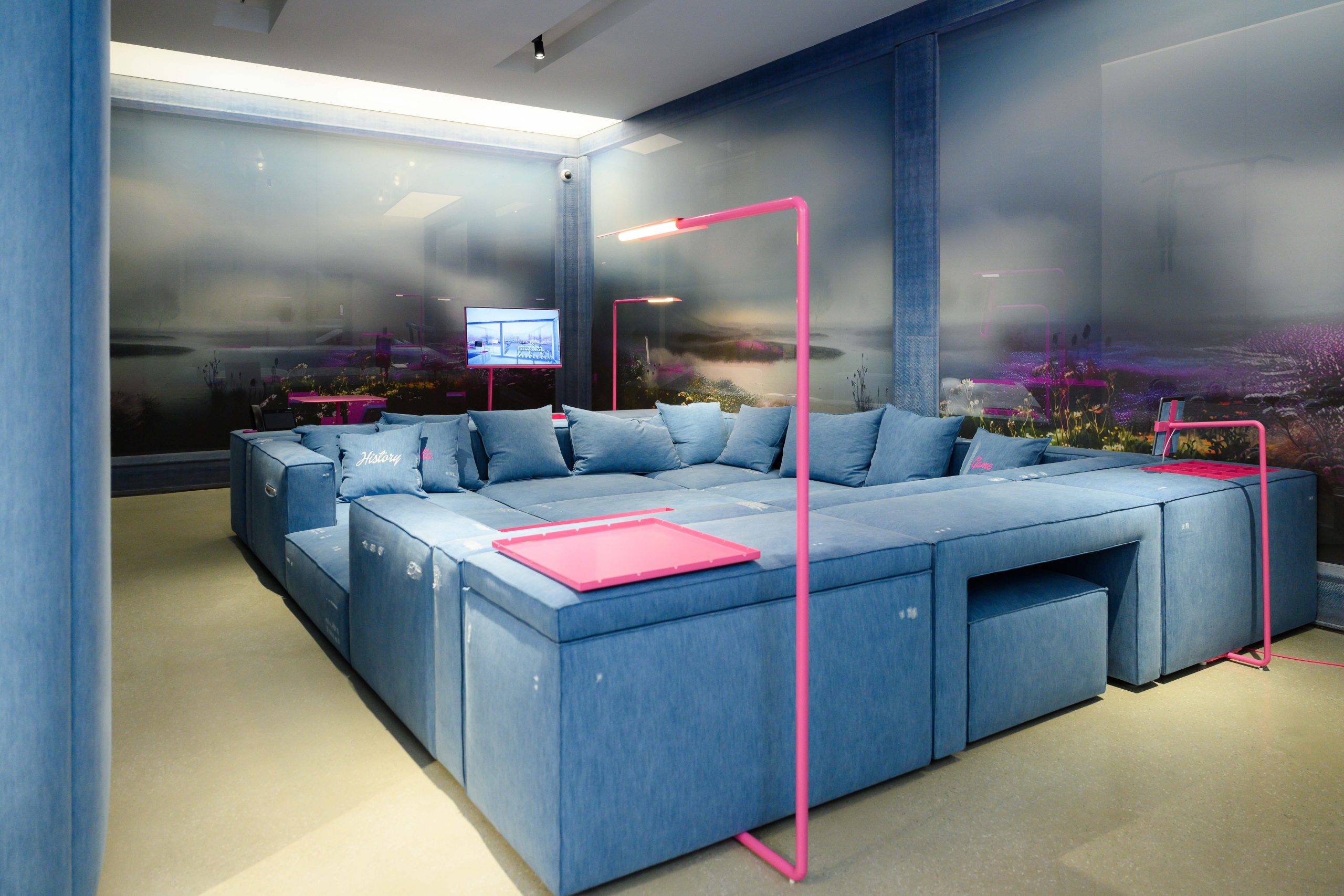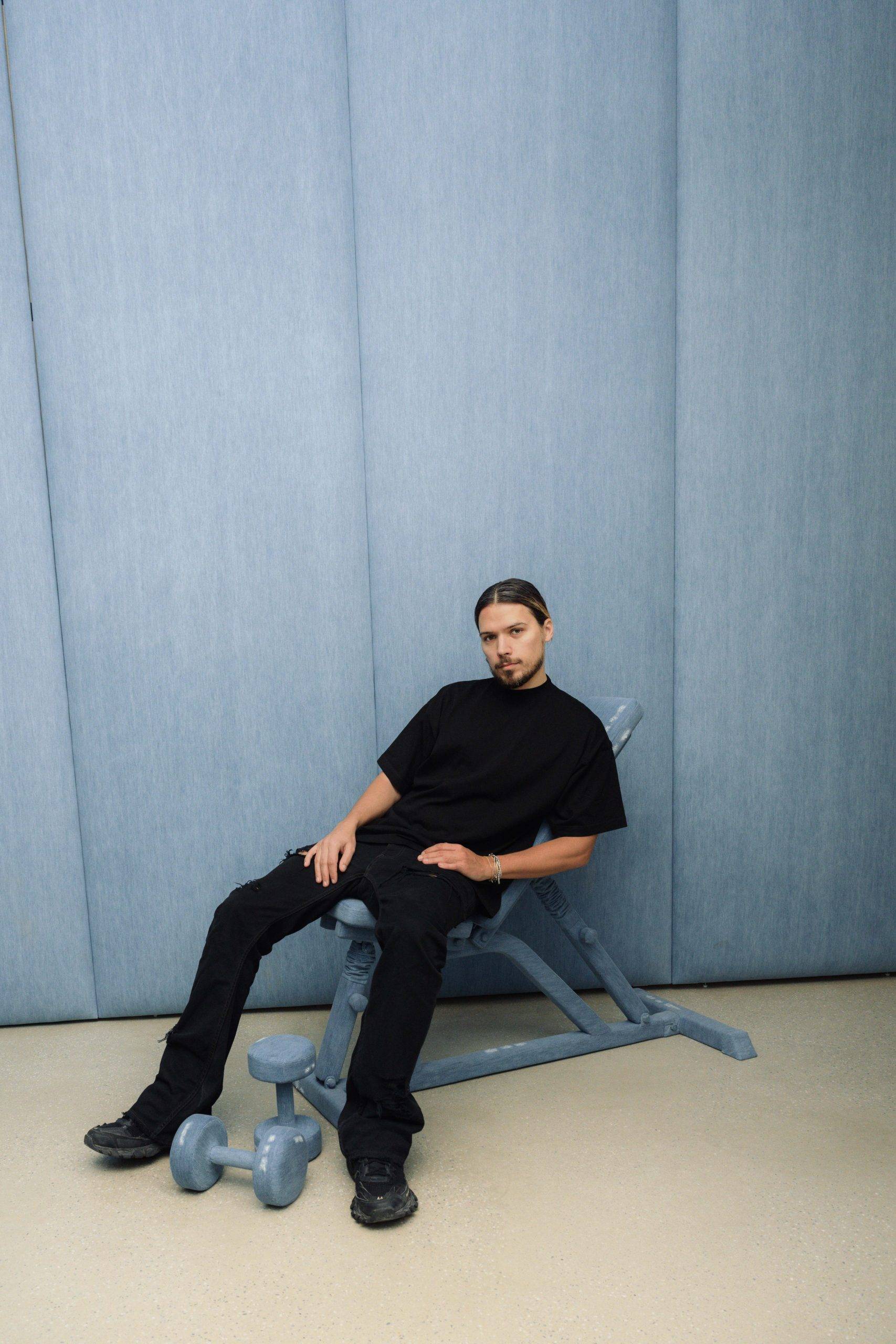 Peut-être êtes-vous un jour entrés par inadvertance dans un étonnant café au mobilier bleu attirant particulièrement l’attention. Cet espace insolite, quelque part au coeur du quartier parisien du Marais, n’est autre que le Crosby Café conçu par Harry Nuriev, libre penseur et fondateur de Crosby Studios. Depuis maintenant plusieurs années, le designer d’origine russe théorise une approche révolutionnaire et pour le moins radicale du design, qu’il pense en lien avec la mode. Cette esthétique forte et colorée qu’il conceptualise avec Crosby Studios contraste pourtant au premier abord avec la personnalité calme et apaisante de Nuriev, amateur de rencontres en tête-à-tête et de conversations intimistes. Mais ne vous y trompez pas, Harry Nuriev est bien l’un des designers les plus prometteurs et avant-garde de sa génération. Inutile de dire que nous avions hâte de le rencontrer à l’occasion de sa nouvelle exposition « Denim » à la Carpenters Workshop Gallery.