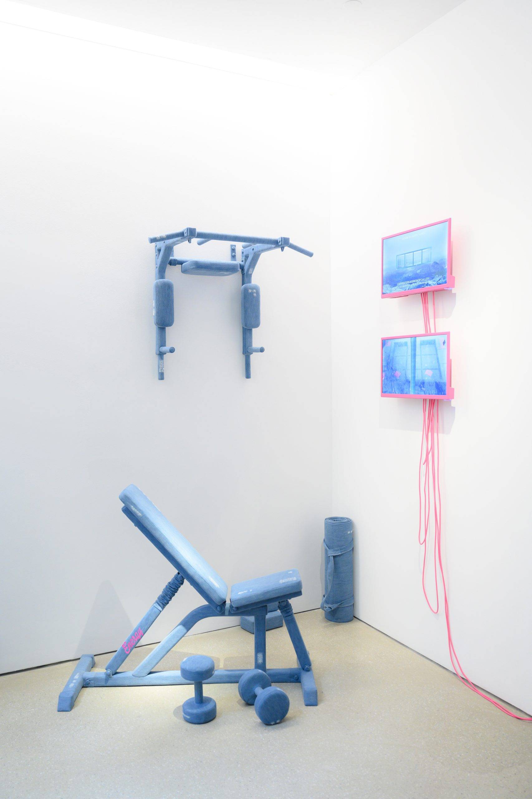 J’ai commencé par fabriquer des échantillons dans mon appartement pour bien comprendre la texture du denim. Ensuite, nous avons développé le projet ici avec la galerie et des amis.