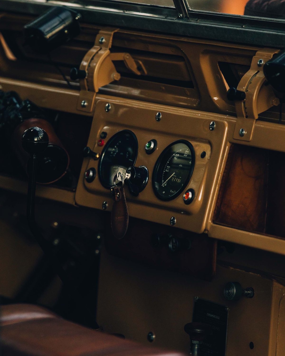 Les plus affûtés d’entre vous s’en souviendront. En 2019, Berluti créait la surprise en customisant intégralement l’intérieur d’une 911 Targa de 1972. Dispersée aux enchères, celle-ci fut un triomphe. L’année passée, c’est au tour d’une buggy de passer par la manufacture. Cette voiture de plage conçue par Bruce Meyer dans les années 60 se retrouvait à son tour parée du fameux cuir Venezia, et d’une ligne de bagages dédiée. Là encore, gros succès. De fait, il y avait fort à parier que la maison s’attaque à un autre panthéon de la cool culture automobile. C’est chose faite avec cette version originale du Defender de 1963. Choyé par les collectionneurs, cette indestructible carrosserie dite « bâchée », donc décapotable, bénéficie d’une rhabillage complet : non seulement les assises, mais également une foule de détails, dont cette fabuleuse bâches recouverte des mentions calligraphiées « scrito ». Pur, robuste, indémodable, si l’on écarte le prix, il ne souffre d’aucun reproche.