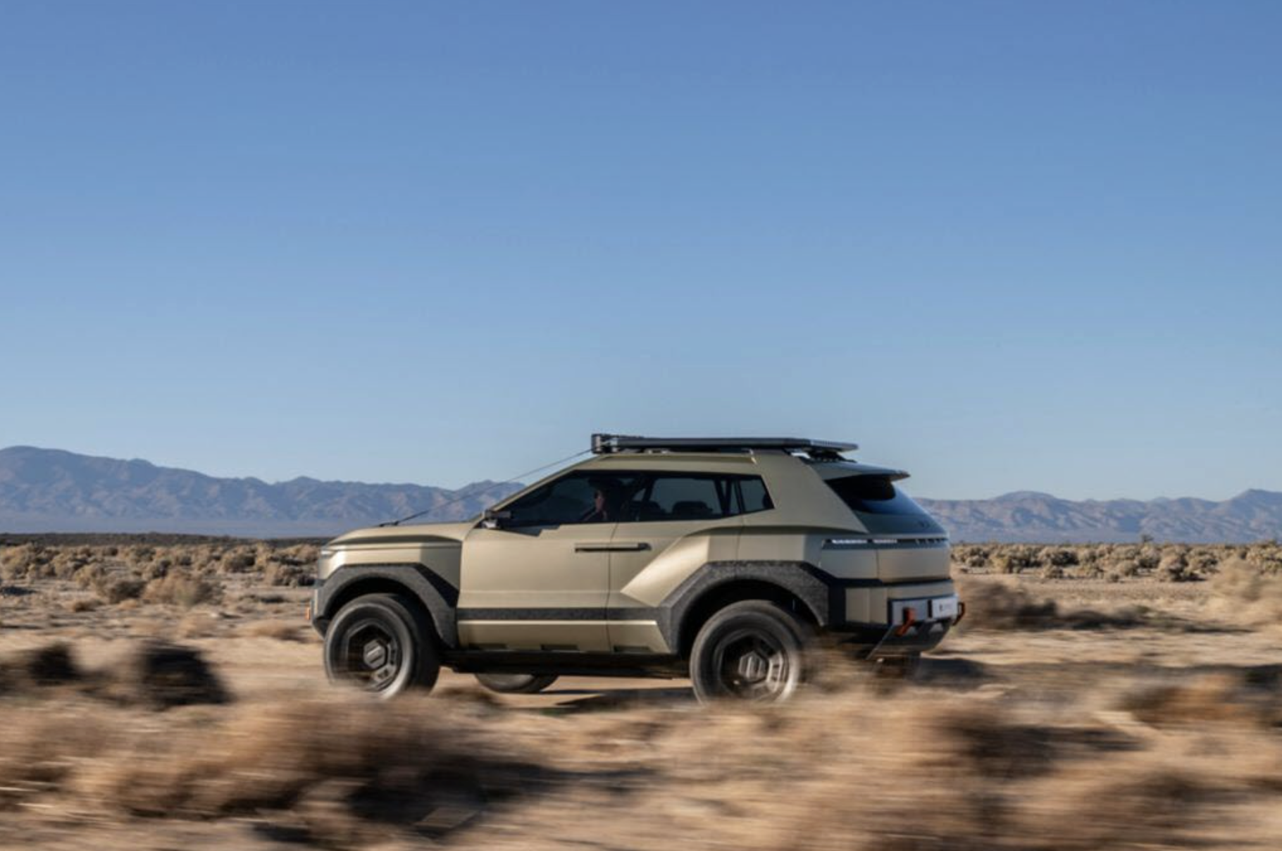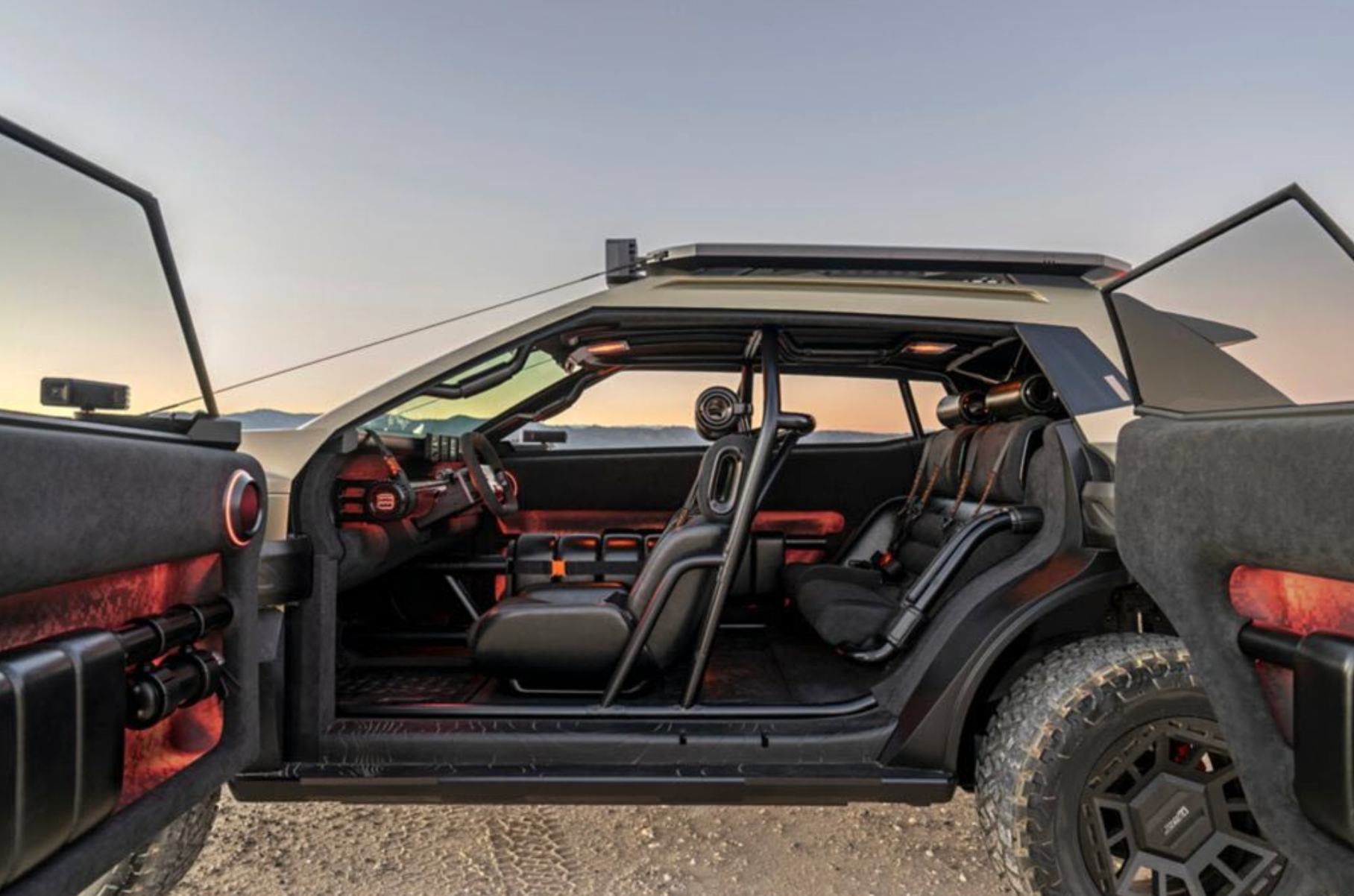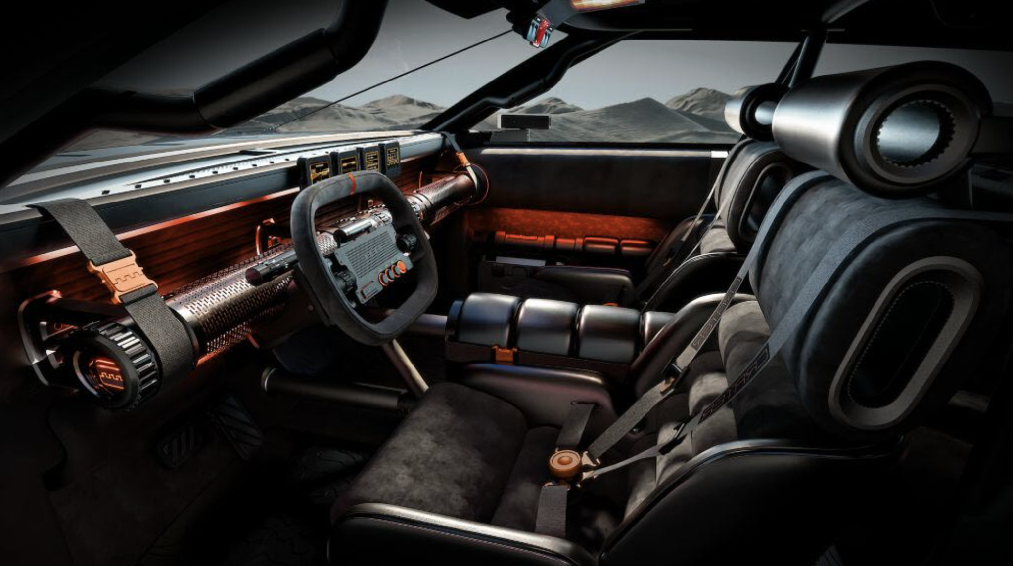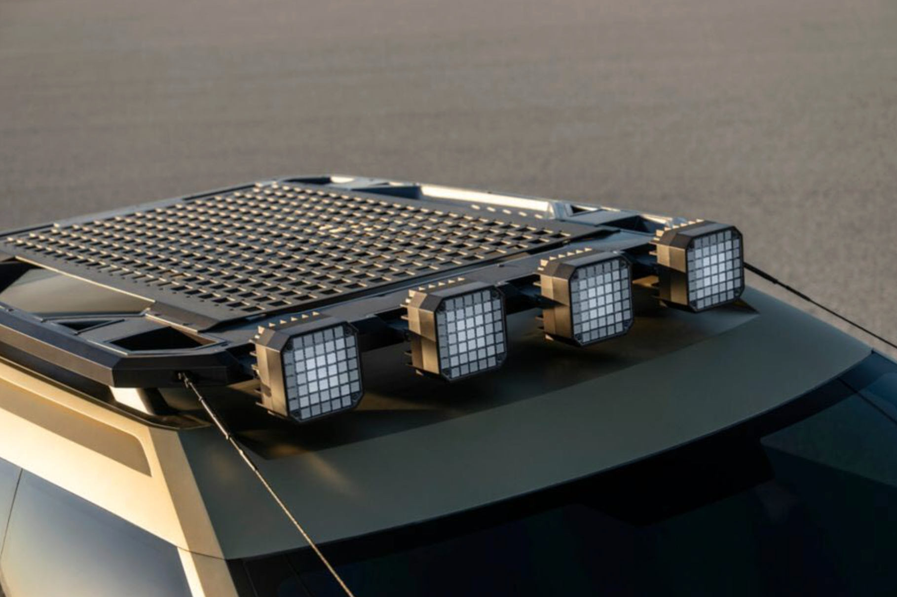 Rares sont les fois où l’on parle de Hyundai dans cette section. Mais reconnaissons que cette concept-car ne manque pas d’attraits. Si la motorisation n’a pas été encore partagée, même si on imagine qu’il s’agira probablement d’électricité, la carrosserie anguleuse du bolide semble belle et bien préfigurer d’un futur véhicule tout terrain. Garde au sol généreuse, proue verticale, capot horizontal, rétro-caméras amovibles et utilisables comme lampes torches, ses atours ne manquent pas d’arguments. L’intérieur, accessible par des portes antagonistes sans montant central, est en cuir et alcantara noirs. La planche de bord métallique noire, de forme cylindrique, présente des molettes façon engrenages, des instruments à cadrans (boussole, altimètre) et des boutons poussoirs (ventilation, audio) sous quatre petits écrans carrés. Enfin, une enceinte Bluetooth amovible est intégrée à la console. Idéal pour les adeptes du glamping de demain !