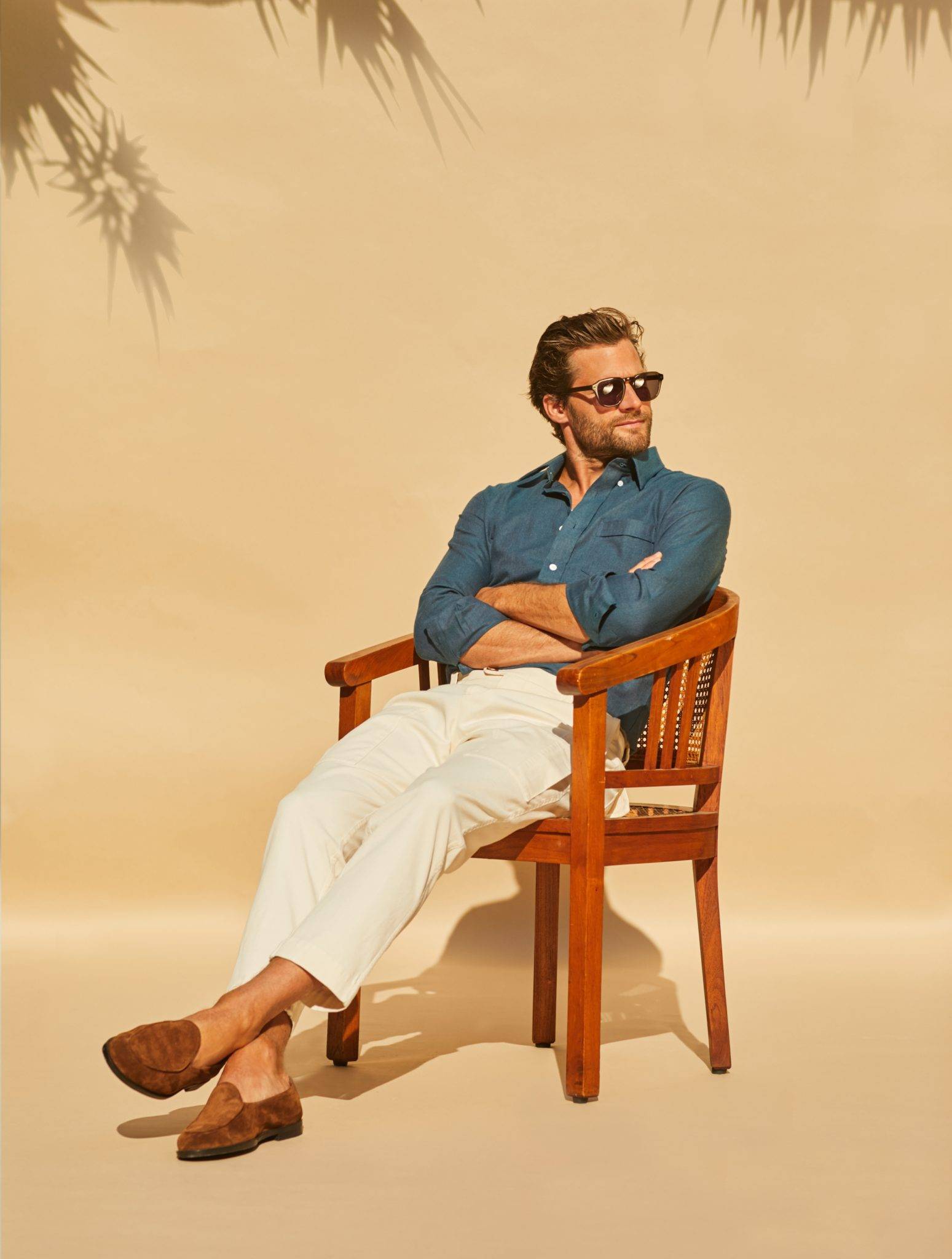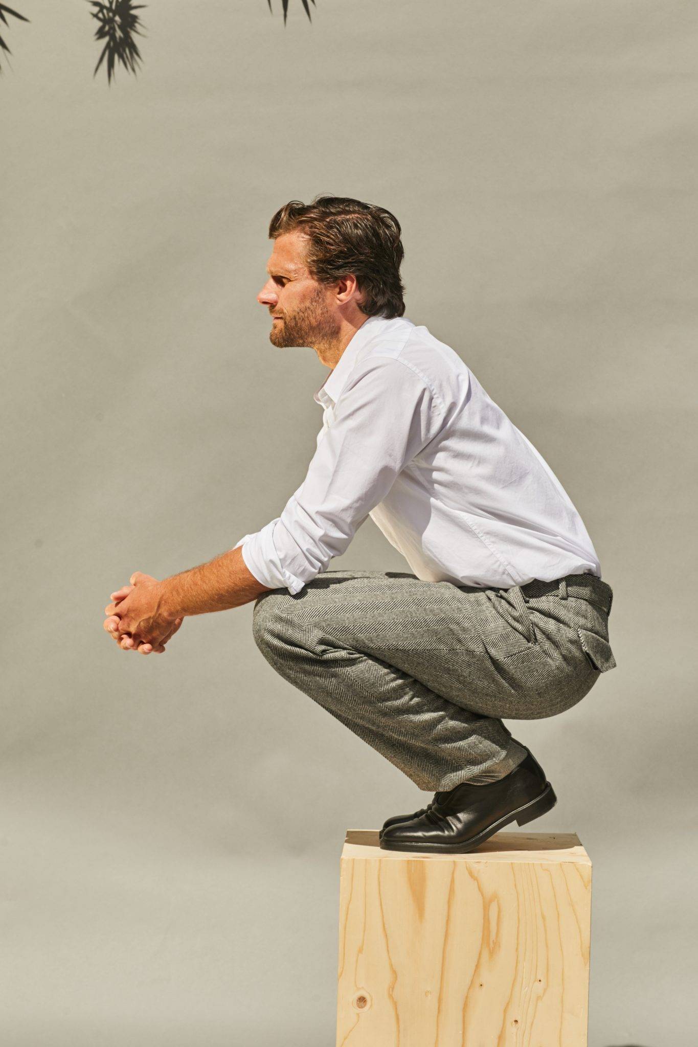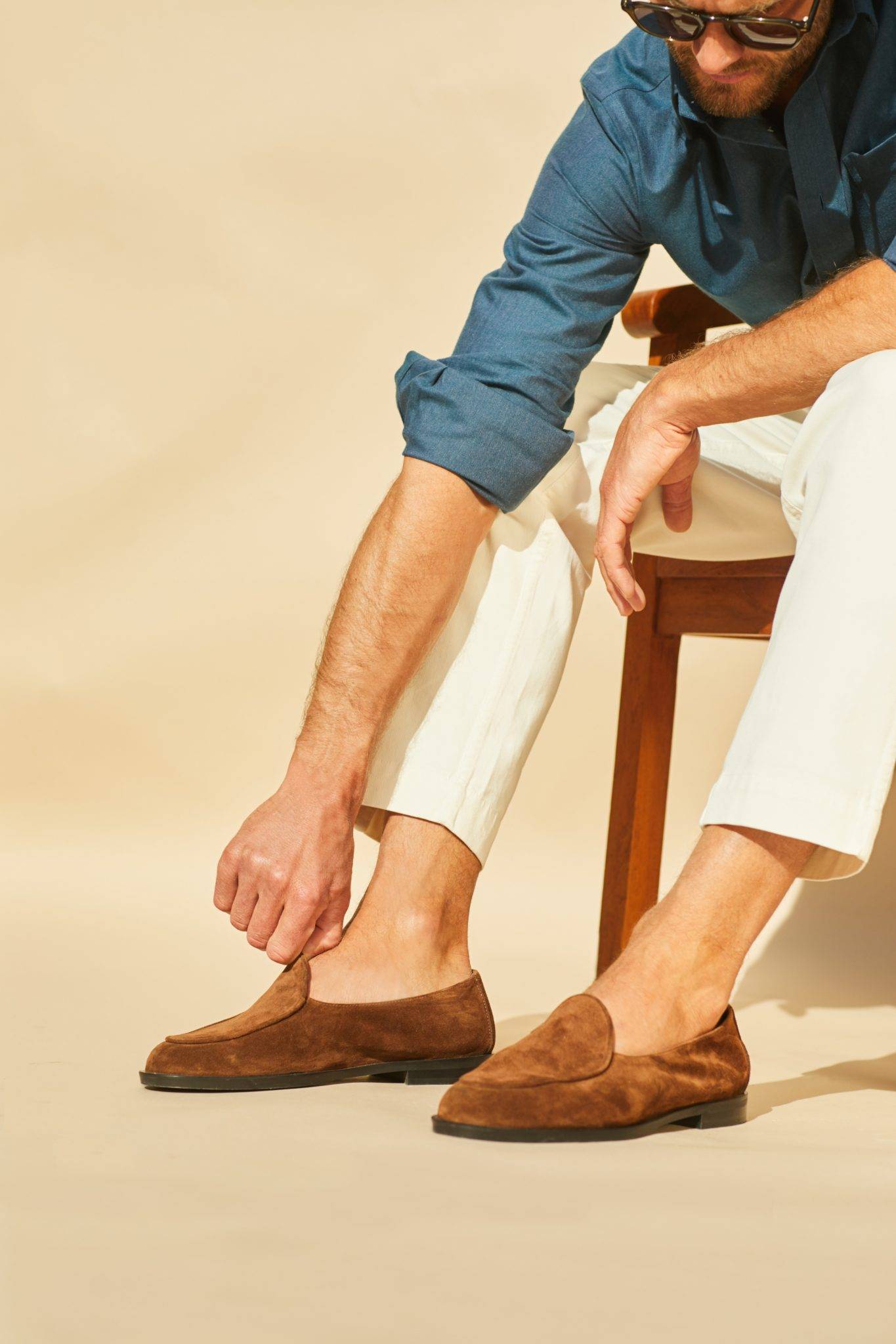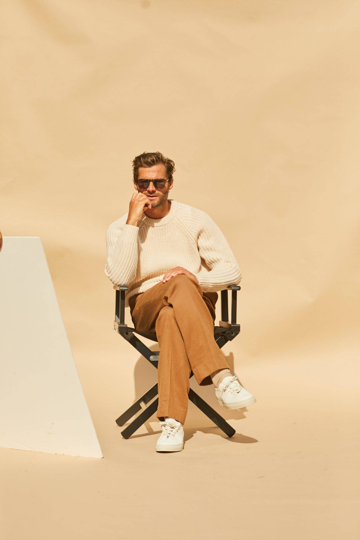Agile comme un chat, Alexis Michalik promène sa silhouette gracile sur le théâtre contemporain comme Jacques Solovière sur le pied masculin. Un style sur le fil, où d’une apparente simplicité surgissent les quelques détails qui tiennent le commun à distance. Se donnant la réplique, ils s’appuient mutuellement sur leurs forces respectives pour faire progresser la collection comme une intrigue. Acte 1 scène 1 avancent-ils. Le dialogue s’installe. Chacun dans son rôle. A Michalik le jeu, à Jacques Solovière le costume. Ils forment ainsi cet indissociable ensemble qui rendent le spectacle singulièrement élégant. Le propos : une vision commune du chic, que d’aucuns aiment à qualifier de « sans forcer ». Or réalité, rien n’est plus exigeant que le naturel. Des souliers, un pantalon dans lequel se niche une jolie maille. Comment faire de ce trio évident, une allure triomphante ? Il suffit d’un pli. Celui signature des souliers Solovière qui, comme celui d’un vêtement, marque d’un trait la frontière entre l’ordinaire et le merveilleux.