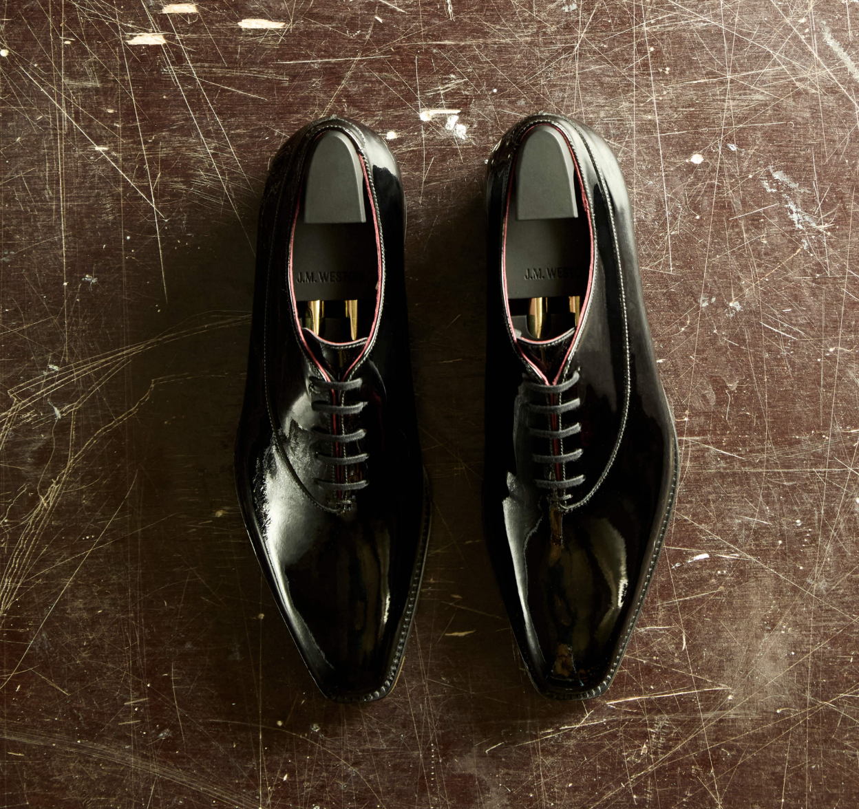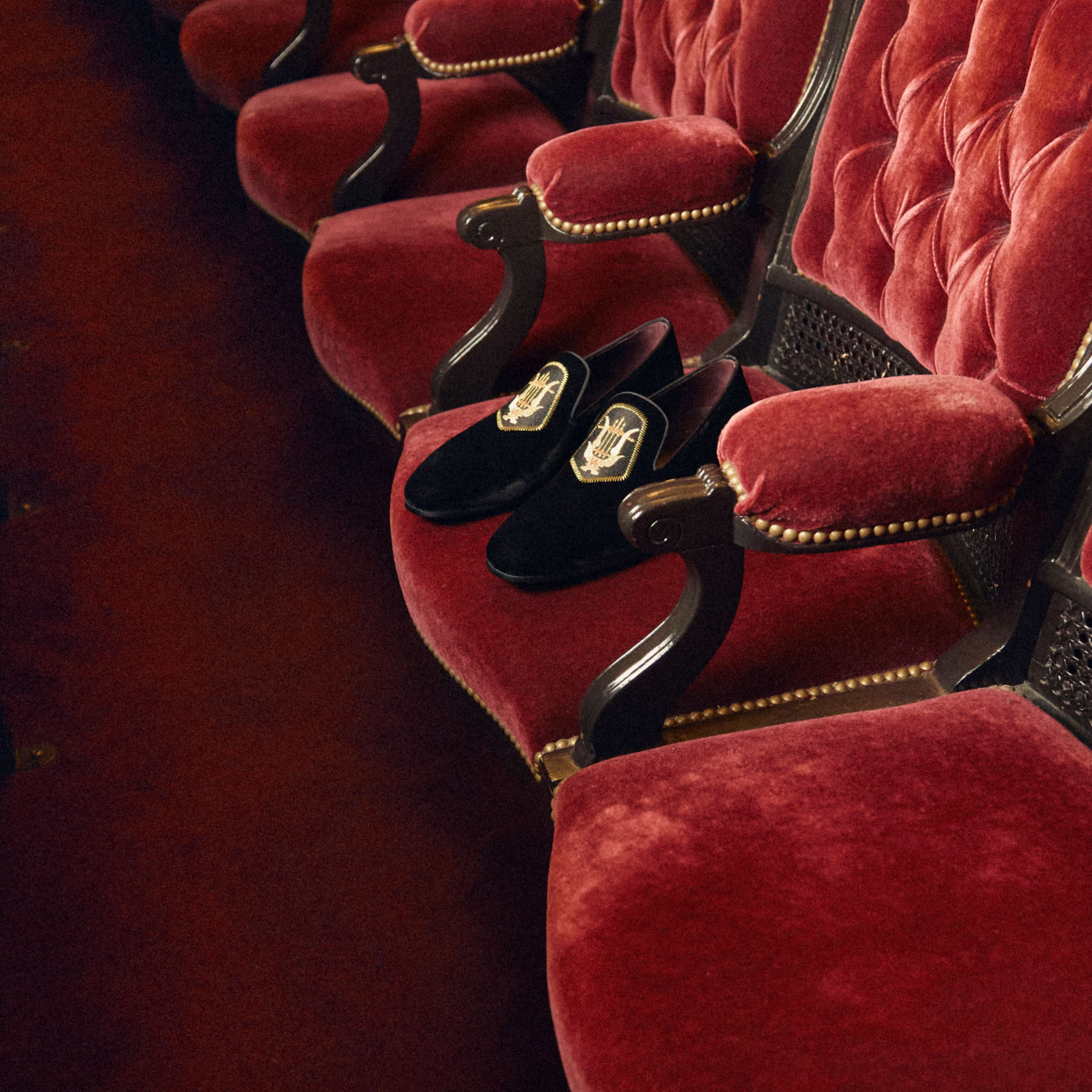 A l’occasion des 150 ans de l’Opéra Garnier, J.M. Weston s’associe à la glorieuse institution pour le lancement d’une collection capsule. Après celle avec 3.Paradis ou encore Roland Garros, cette initiative s’inscrit dans une stratégie plus large menée par Olivier Saillard pour élargir l’offre de la maison sur le segment du vêtement de soirée. Les créations s’inspirent des symboles emblématiques de l’opéra. Parmi elles, un mocassin en velours noir, brodé d’un soleil doré en hommage à Louis XIV, et une chaussure à enfiler ornée d’une lyre dorée, réminiscence des motifs architecturaux de Charles Garnier. Enfin, un richelieu en cuir verni complète la ligne, accompagné de pochettes estampées au nom du Palais Garnier. Rien ne saurait être plus précieux pour un danseur que ses pieds. Les voici enrobés du plus beau des atours.