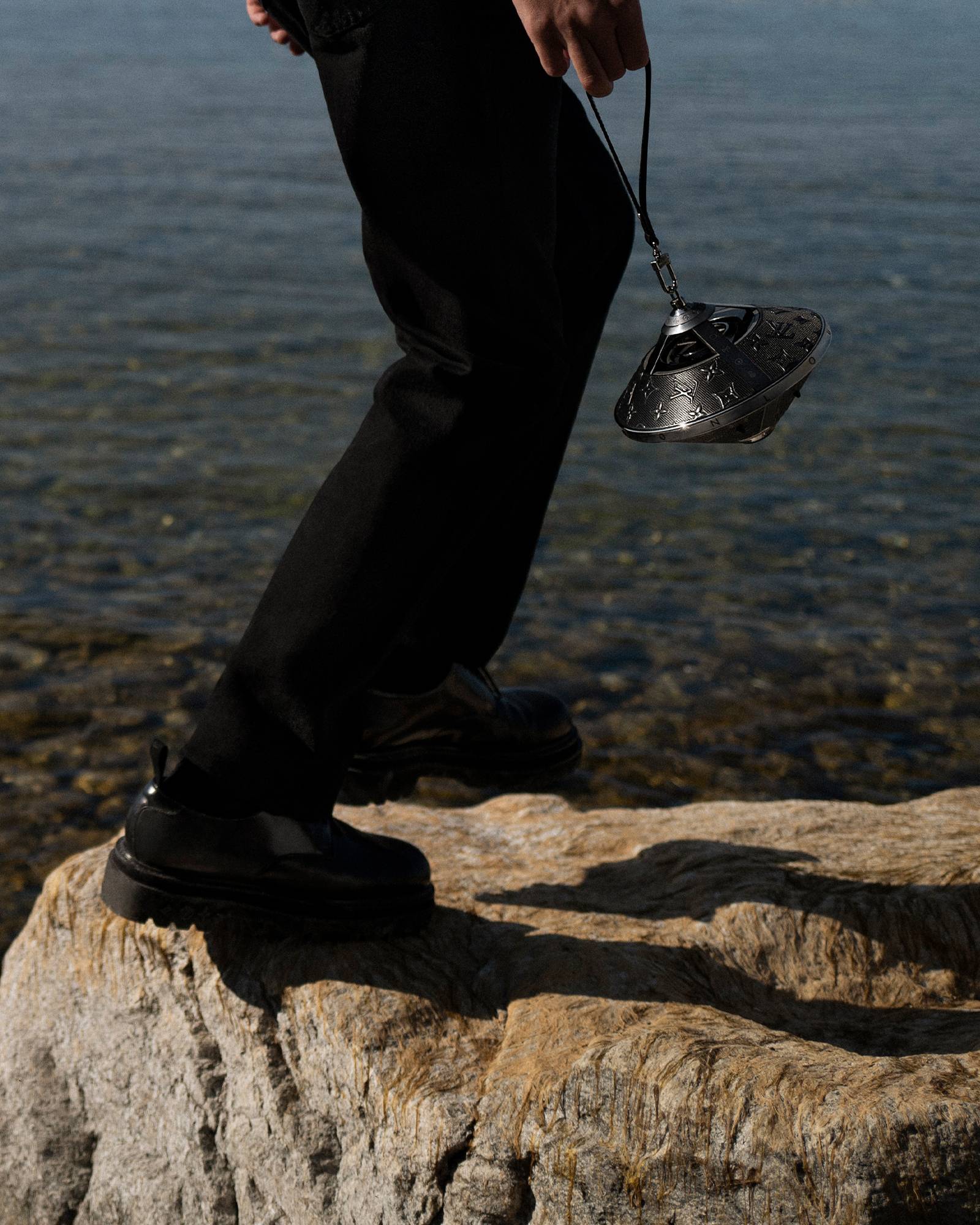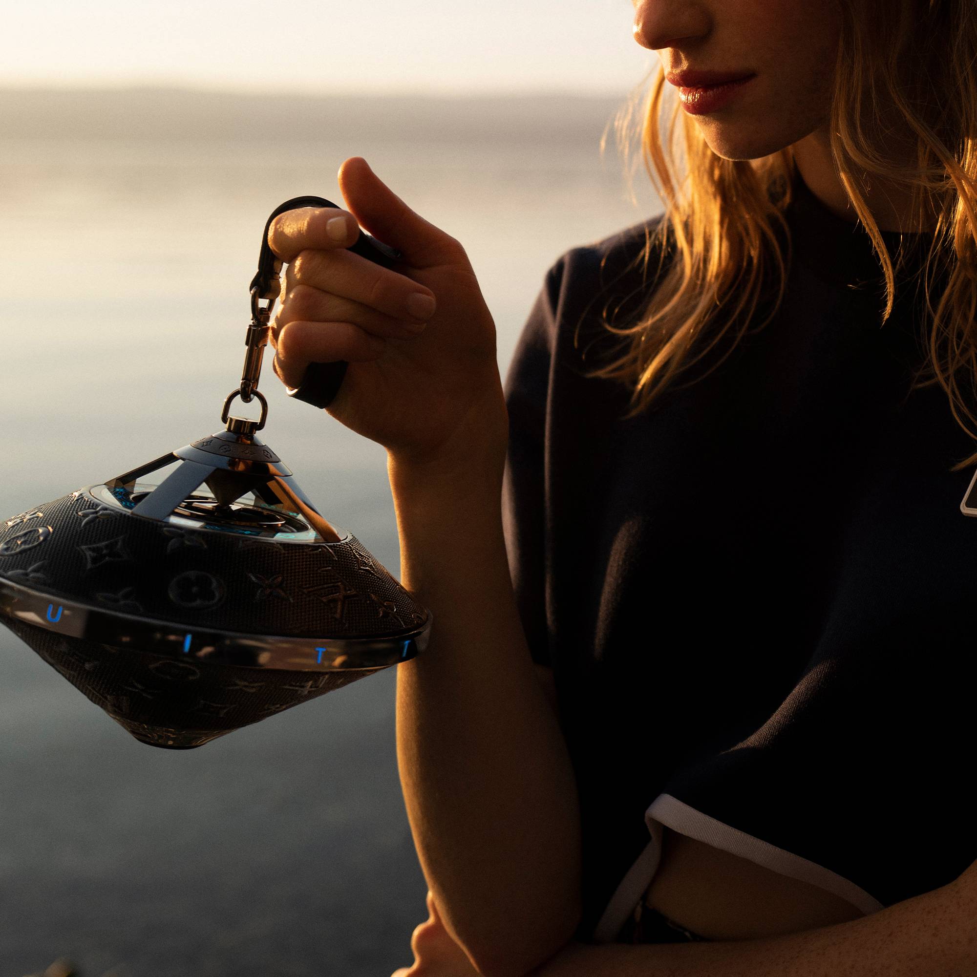 Inspirée du sac toupie dessiné par le directeur artistique Nicolas Ghesquière, cette nouvelle enceinte nomade est l’accessoire idéal pour ambiancer son été. Vibrant comme un cœur qui bat, ce bel objet affiche sous une série de leds colorés les monogrammes emblématiques de la maison. A la main comme un sac ou posée sur son support comme un objet de décoration, elle se connecte en un tour de main aux différentes technologies proposées par la majorité des téléphones. 15h d’autonomie devraient suffirent à aller au bout de la nuit des plus fervents danseurs…
