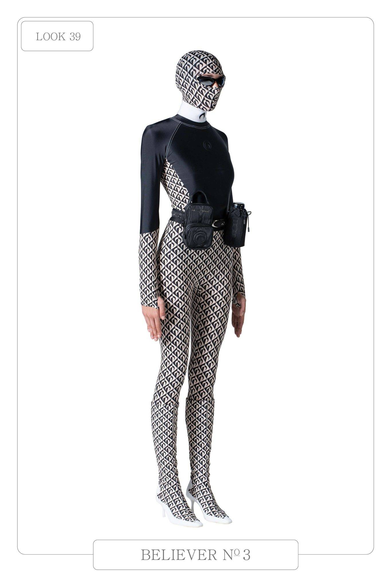 Initiée par le site Mytheresa, cette rencontre au sommet a donné lieu à une fabuleuse collection mêlant l’univers onirique de Marine Serre au glamour des souliers Jimmy Choo, dont Sandra Choi est la directrice artistique. Au départ, il y a cette paire de bottes Jimmy Choo vintage que possédait Marine Serre. En voulant marier les deux ADN, le tissu imprimé de la créatrice a donné une hybridation ultra contemporaine aux souliers historiques. On obtient ainsi un soulier clairement identifié comme étant du Jimmy Choo, mais recouvert de l’imprimé signature de Marine Serre. Un imprimé qui se prolonge dans la collection de vêtement et qui donne à l’allure un faux air d’uniforme inédit, accentué par la diminution significative de certains talons. Un équilibre ténu qui donne à cette idée toute sa pertinence.