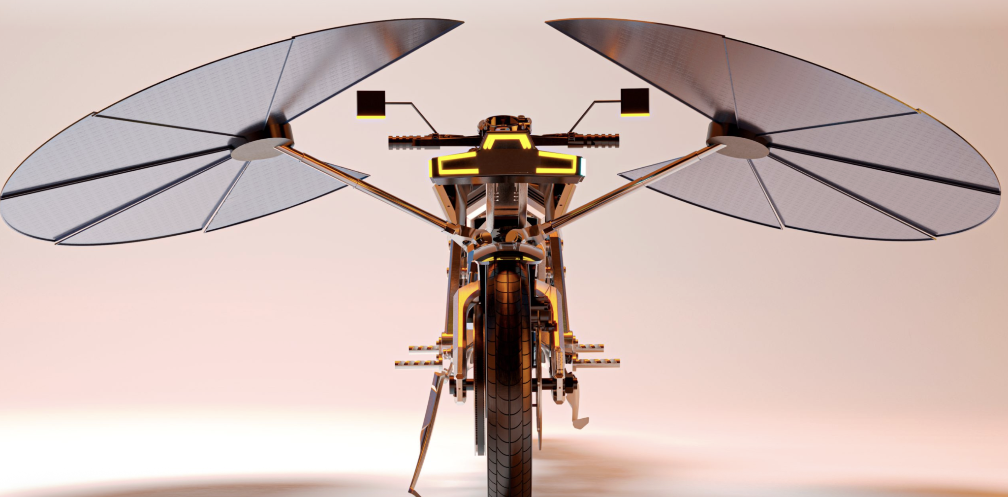 Et la lumière fuse. Construite à partir d’un cadre léger en composite aluminium-carbone, la Solaris ne nécessite ni essence, ni station de recharge, ni prise électrique. Une fois garée, ses « ailes » solaires circulaires rétractables se déploient pour former un panneau qui capte la lumière du soleil afin de recharger sa batterie lithium embarquée. Alimentée par un moteur électrique à couple élevé et un système de freinage régénératif, elle offre un couple instantané et une énergie étonnante pendant la conduite. Inspirée des lignes d’un félin, la Solaris dispose également d’un système intelligent de gestion de l’énergie, avec une application, qui suit en temps réel l’absorption solaire, le stockage et la puissance du moteur.