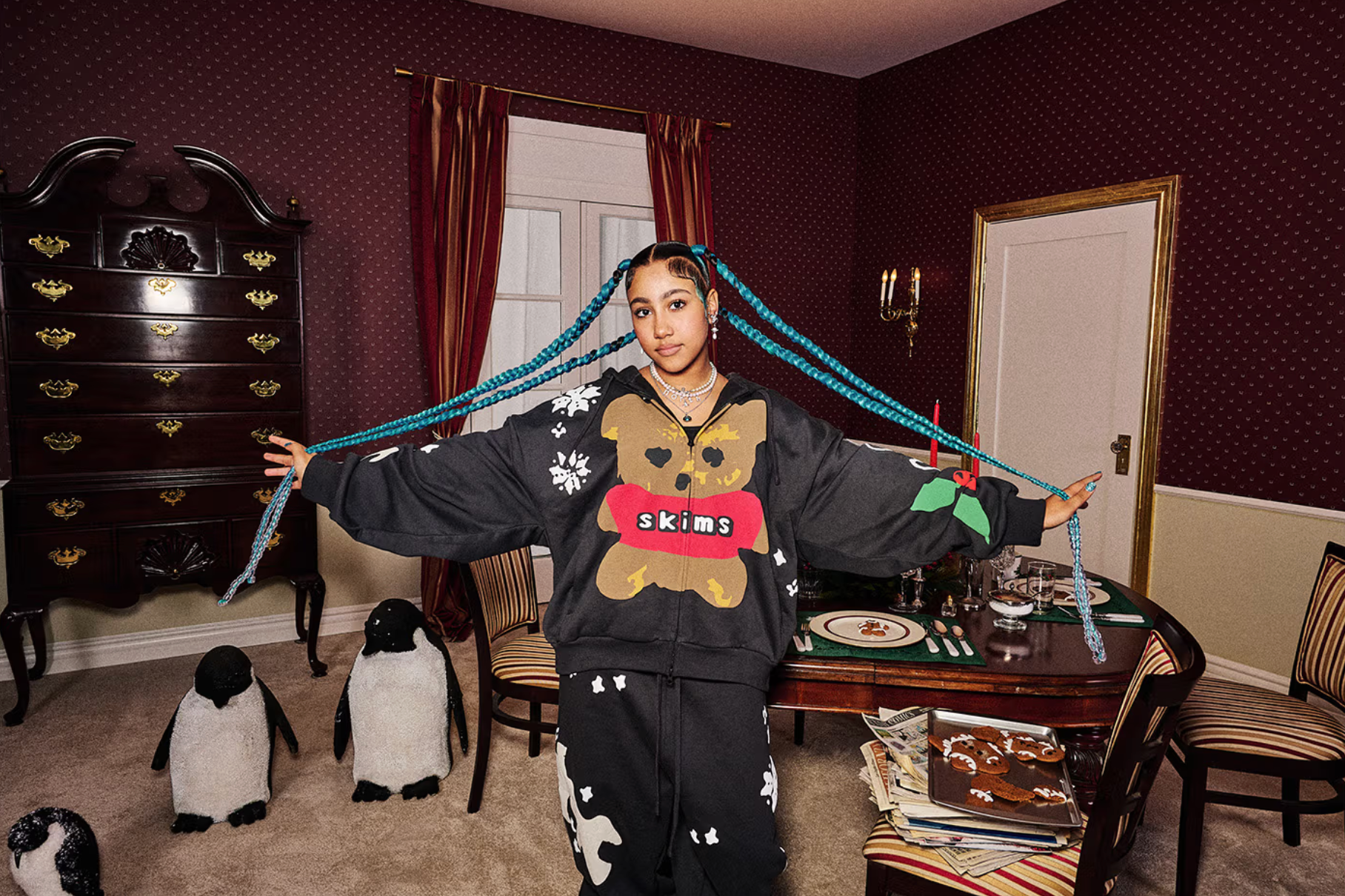 SKIMS et Cactus Plant Flea Market ont dévoilé leur première collection capsule qui fusionne les vêtements d’intérieur de SKIMS avec l’esthétique toujours étonnante de CPFM. La campagne, mettant en vedette notamment North West (l’enfant issue du précédent mariage entre Kim Kardashian et Kanye West), a été photographiée par Harmony Korine à qui l’on doit déjà quelques campagnes. L’idée est de revisiter les basiques du vestiaire domestique, en mélangeant les coupes, les graphismes et les influences. C’est ludique, un peu baroque, et au final, assez cool pour les fêtes.