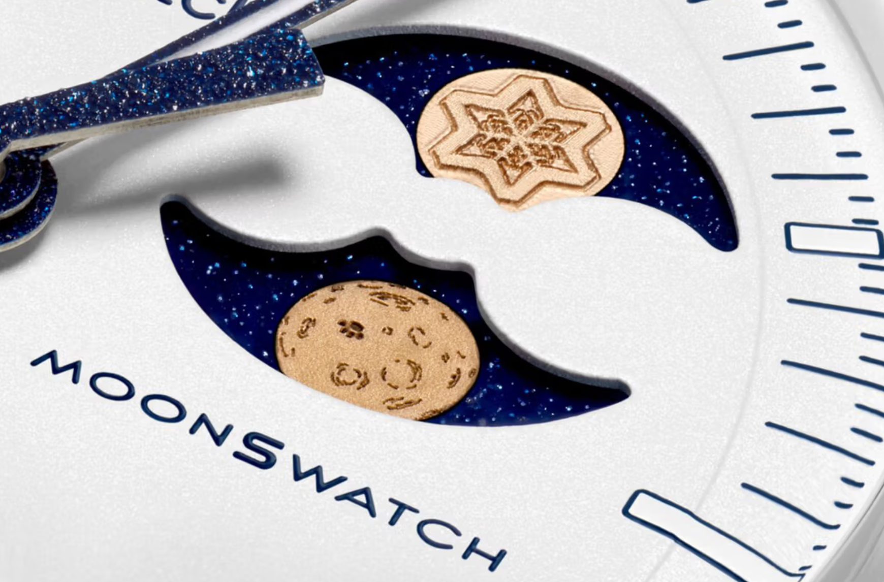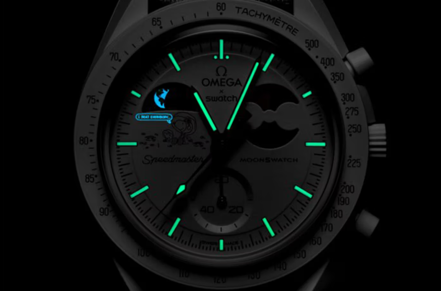 Plus le temps passe, plus les collaborations entre swatch et Omega gagnent en qualité et en détails. Et ça n’est certainement pas cette toute dernière livrée qui nous fera mentir. Swatch lance donc une nouvelle Mission to Earthphase MoonSwatch pour la Cold Moon du 4 décembre 2025. Le boîtier Bioceramic blanc présente un affichage earthphase luminescent (océans bleus sous UV) à 10 heures, intégrant Snoopy et Woodstock. Le cadran opalin possède des index Super-LumiNova verts et une phrase cachée UV. Le sous-compteur à 2 heures loge deux phases de lune Moonshine Gold, l’une Snoopy, l’autre ornée d’un flocon de neige gravé au laser, rendant chaque montre unique. Le bracelet enfin, est en caoutchouc blanc avec fermeture Velcro.